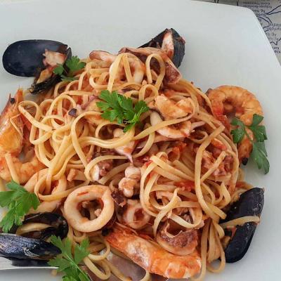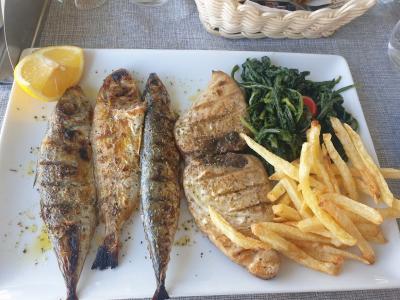 Προσφέρει φρέσκα ψαριά, που πιάνει ο ίδιος ο ιδιοκτήτης, διαφορά θαλασσινά, ντόπια κρέατα και λαχανικά ακόμα και μαγειρευτά τους καλοκαιρινούς μήνες.