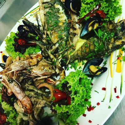 Στο εστιατόριό μας θα σας προσφερθεί μεγάλη ποικιλία από φρέσκα ψάρια και σπεσιαλιτέ θαλασσινών.